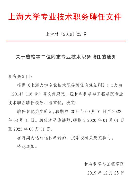 关于姚彧敏等一位同志专业技术职务聘任的通知