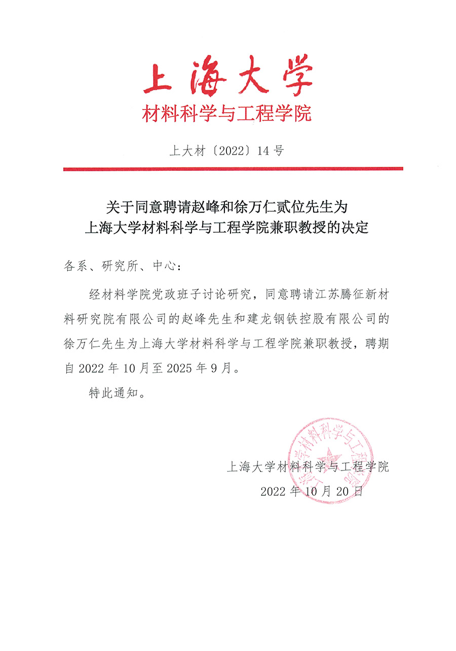 上大材〔2022〕14号--关于同意聘请赵峰和徐万仁贰位先生为3044AM永利兼职教授的决定.pdf